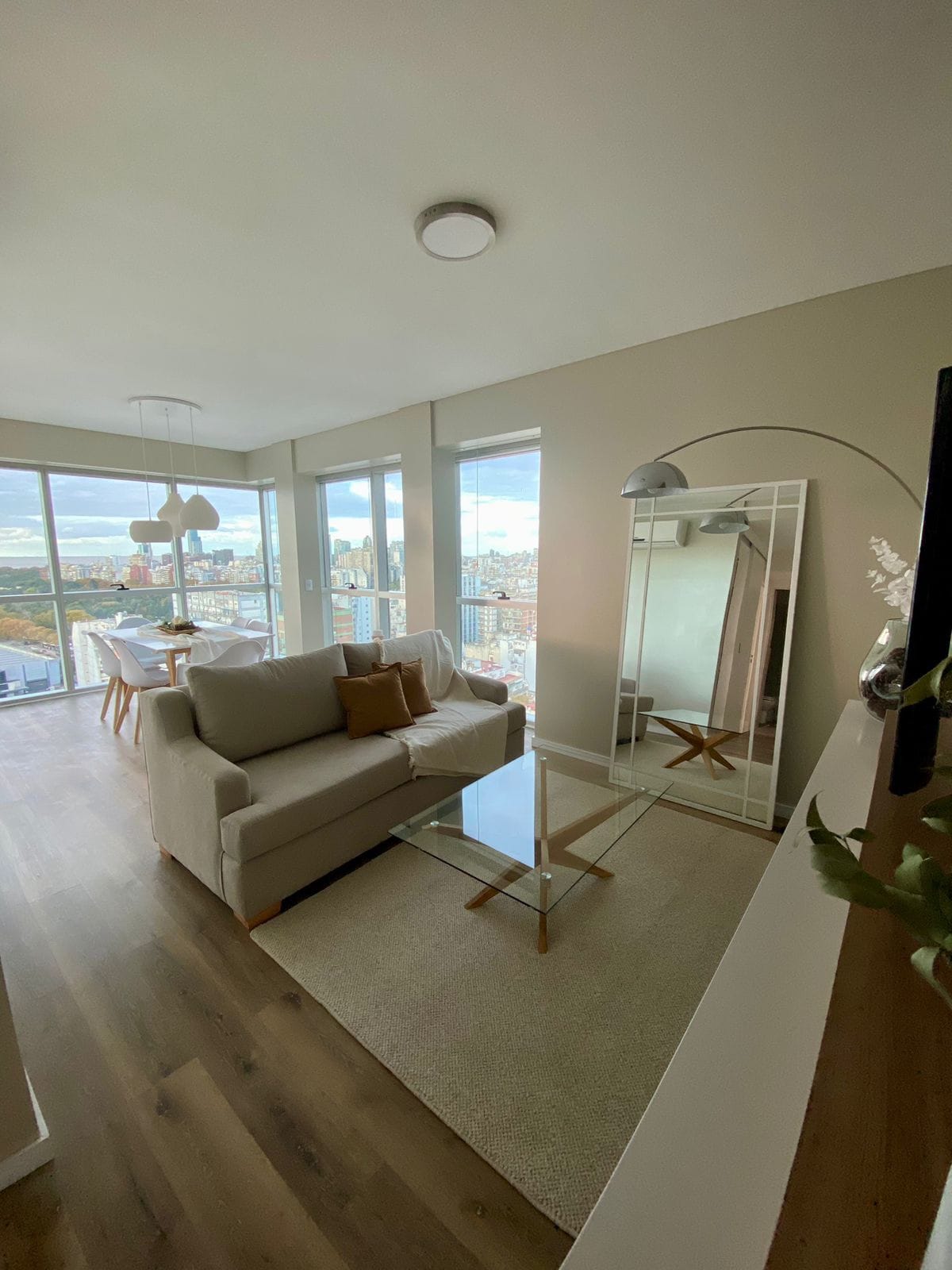This amazing 27th Floor, two storey, luxury 2-bedroom sunrise and River View Loft in the distinctive Palermo Uno high-rise apartment building will dazzle you with style and light Check In Rules: Check in: 14PM & Check out 11AM. Booking the apt. from the previous day allowed to check in as early 8AM. Check in between Midnight AM and 8AM is NOT possible. Any doubts about arrival let us know before you book If needed we can store your luggage after 9AM