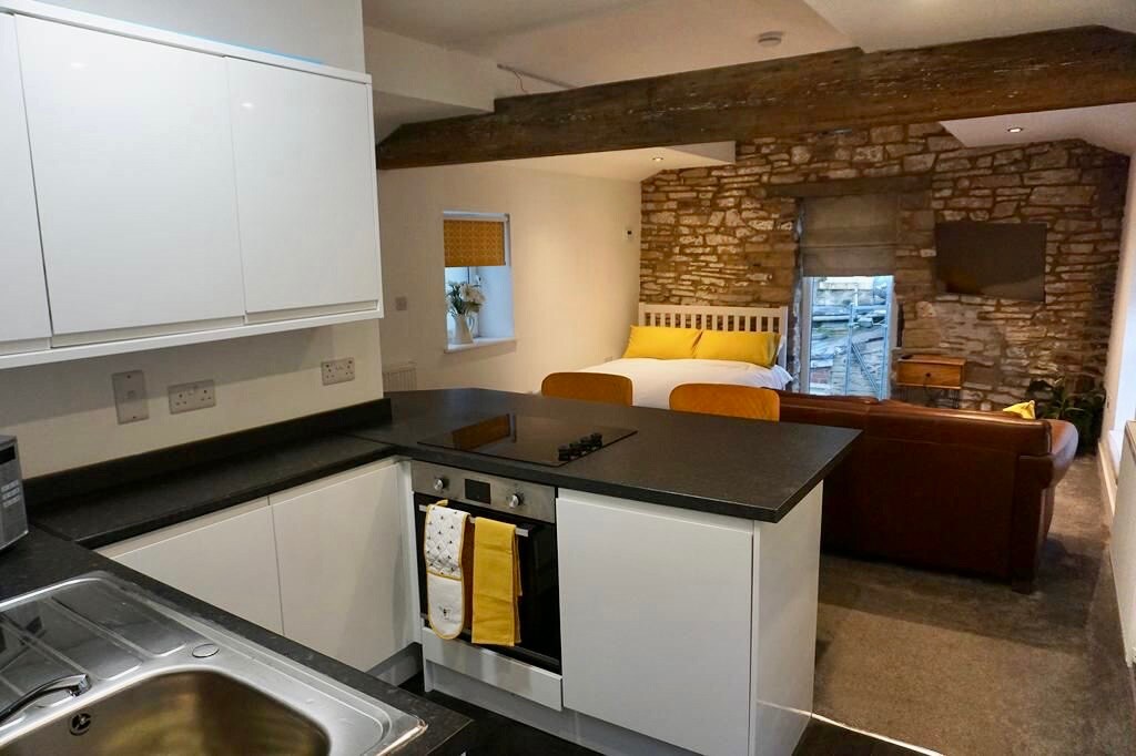 Discover The Old Smithy, a cozy studio in Glossop. This pet-friendly, first-floor retreat for 2 adults seamlessly blends rustic charm with modern comfort. Explore the nearby Peak District from this unique converted barn, steps away from shops, cafes and bars. The open-plan layout, well-equipped kitchenette, and comfortable sleeping area make it a perfect base for your Peak District adventures. Book your stay for a memorable blend of history, comfort, and natural beauty.