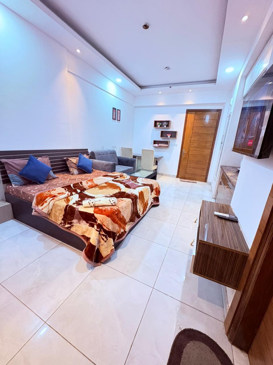 Luxurious & Independent Fully Equipped 1bhk Studio Apartment, with all Modern Amenities, Couple Friendly, Centrally Located, Fantastic night view from 20th Floor. Enjoy your Precious Stay without any hustle. Shelf Check in and Doorstep Food Delivery from Zomato and Swiggy. This Apartment is Located Inside the Shopping Mall Area, Within Premises- US Cinema at 5th Floor, Gold Gym at 4th floor, All big Food outlet at ground Floor, Gaming Zone for kids, More Supermarket for grocery and Many more.
