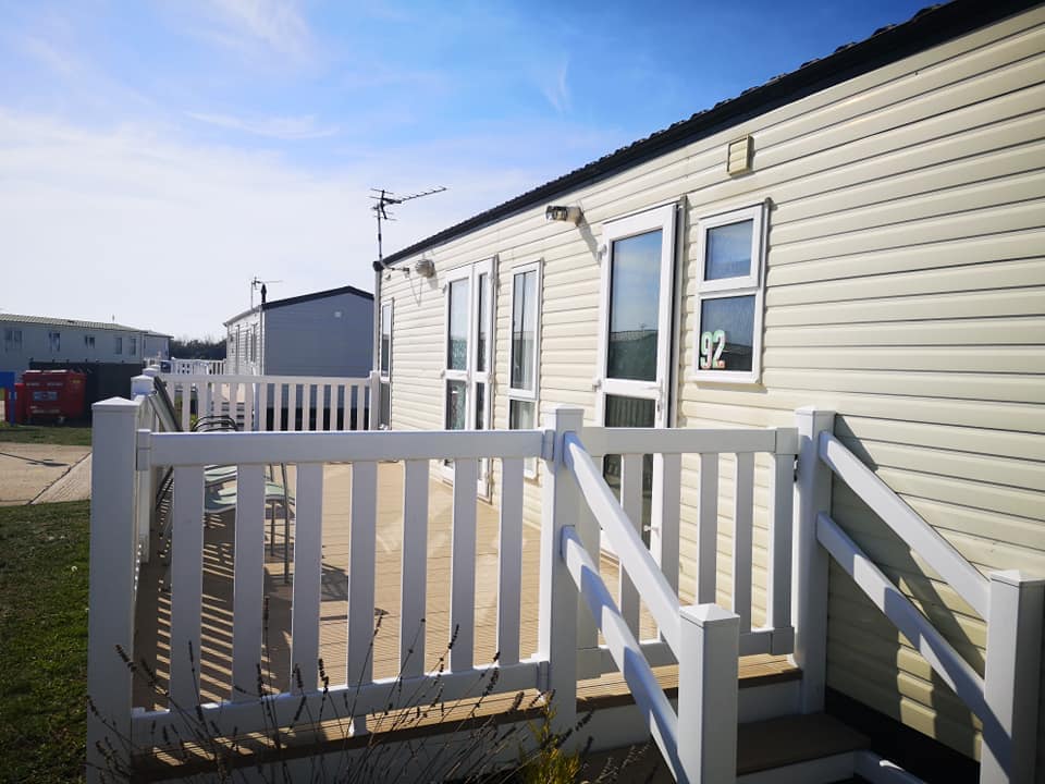 PARK FACILITIES REOPEN 20/03/2026 PET FRIENDLY Shingle bay 11 Romney Sands. 3 bed (sleeps 5). 38 x 12FT holiday home. Family friendly site, located opposite Greatstone Beach. A home from home unit with own parking space in a quiet area of the park. Beds freshly made for your arrival. A short stroll to amenities. Everything you need is hopefully thought of. We are a pet friendly home..with a gated deck to keep our furry friends safe.