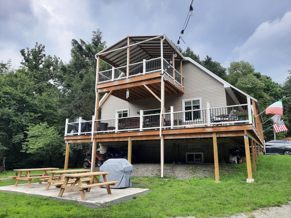 Welcome to our charming A-frame retreat near Elk! At 101 Longacre Rd, Susquehanna, PA! This cozy cabin features 2 bedrooms, 1 bathroom, a spacious deck, back patio, and a fire pit. Perfect for couples, families, or friends, our cabin offers a serene escape with modern comforts. Enjoy the stunning surroundings, unwind by the fire, or explore the beauty of Susquehanna. Ideal for those seeking tranquility and adventure. Book your stay today and create lasting memories at our lovely A-frame cabin!