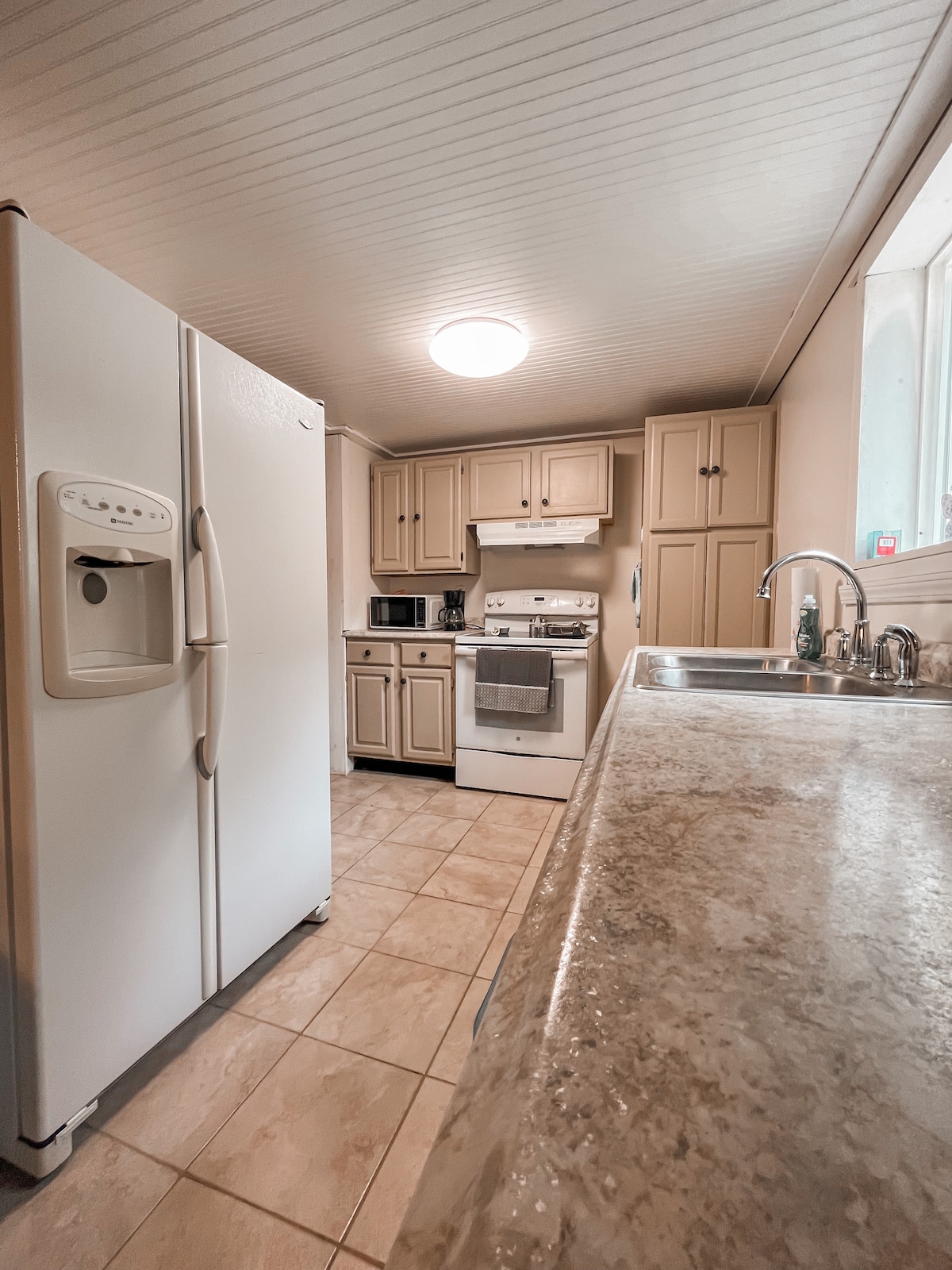 Enjoy privacy on our sunrise terrace with a view to the trees of Haw Creek - yet you are still in a modern neighborhood in Columbus, Indiana. * New Ranch Home Built in 2016 * King Sleep Number Bed Master Suite * High Speed WiFi * Open Concept Living-Dining-Kitchen Area * Disney Channel Plus, Paramount Plus, Prime Video and More * Outdoor Fire Place on Private Patio * Coffee and Tea * Full Kitchen with all Cooking Needs * Laundry