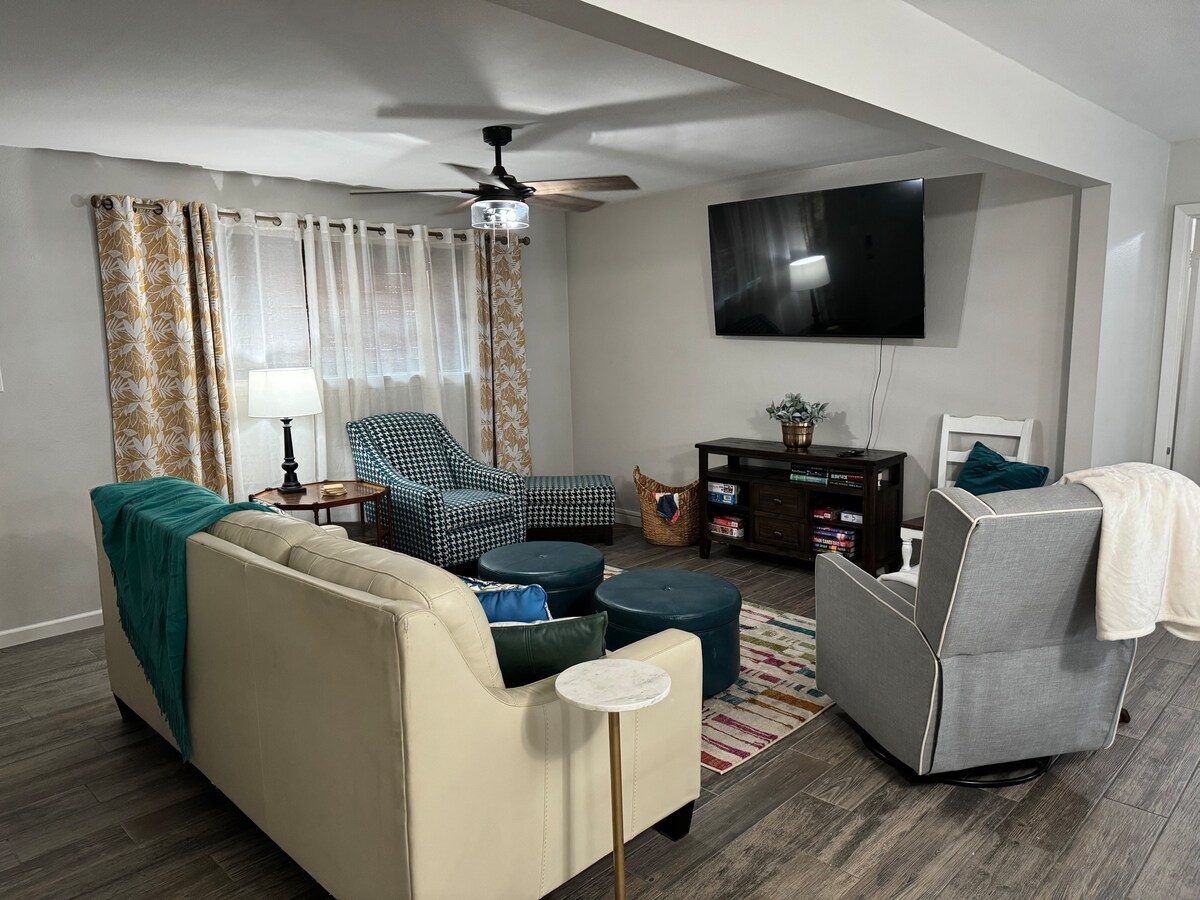 Family friendly with 3 bedroom 2 full bathroom. Enjoy everything you need in a perfect location that will feel like home. Everything you need to feel comfortable, fully stocked kitchen, coffee maker, air fryer, George Foreman grill, laundry detergent, and anything else you may need. Close to shopping, entrainment and restaurants. We also offer a weekend bed and breakfast option for an additional fee. Designed with you in mind. Long stays 30+ days welcomed!!