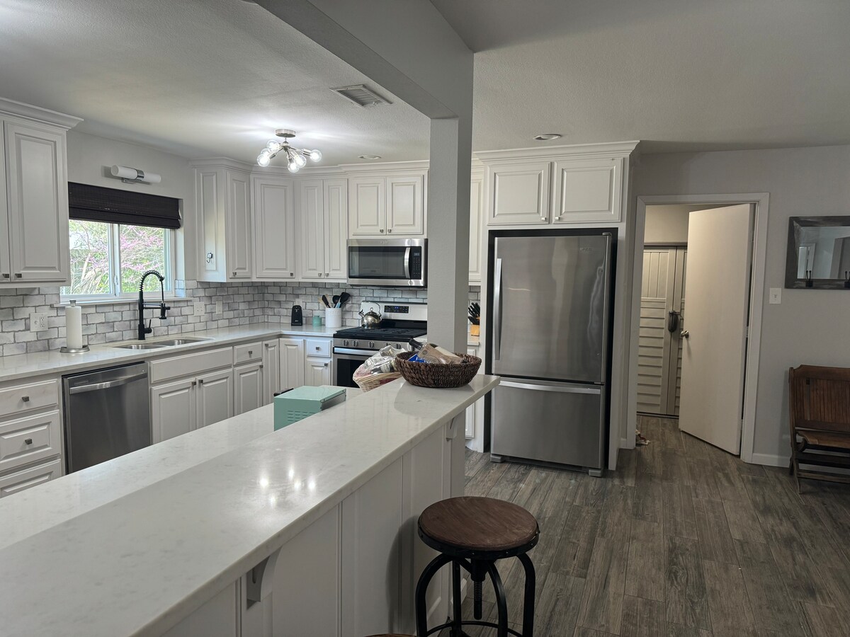 Josie’s Haven is the perfect place to stay for families, groups, and contractors working on a projects. The home is spacious, clutter free, and conveniently located a mile from town and less than a 2 minute walk to Kilgore College. Perks: Office set up with printer, 3 king beds, 1 queen, 1 full, and a convertible couch. Private backyard, less than $5 food delivery, private park across the street and less than a block from college police station.