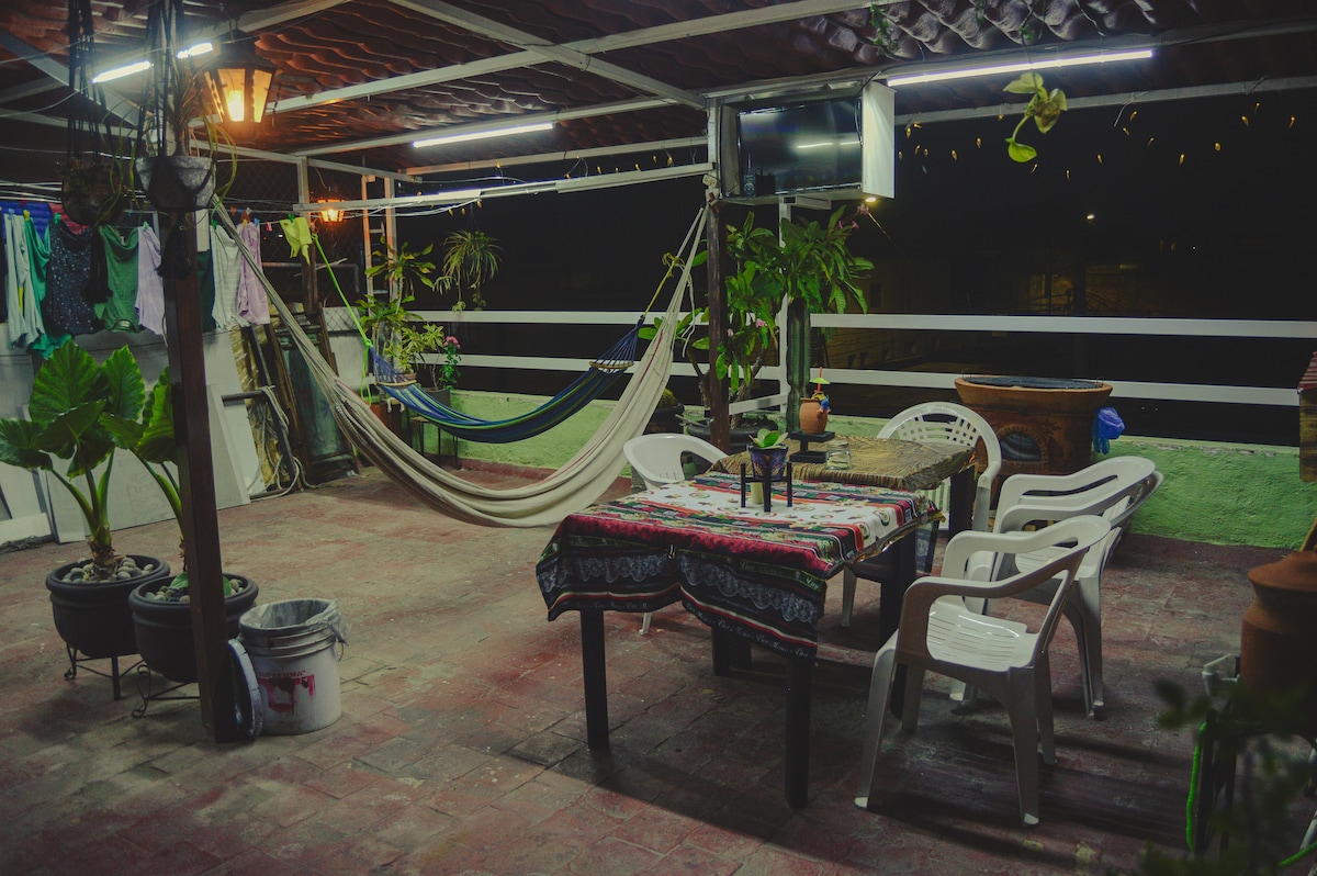 Este espacio, es excelente para estancias largas o cortas, cuenta con todo lo necesario para tu comodidad, cocina equipada, bien iluminado, son dos recamaras, en una se encuentra la cocina, estudio y televisión, tiene un balcón lleno de plantas, con una hamaca super cómoda para la siesta, un pequeño comedor. En esta recamara contamos con un futon que se hace cama matrimonial. La segunda recamara tiene unos sillones y la cama principal que es también matrimonial.