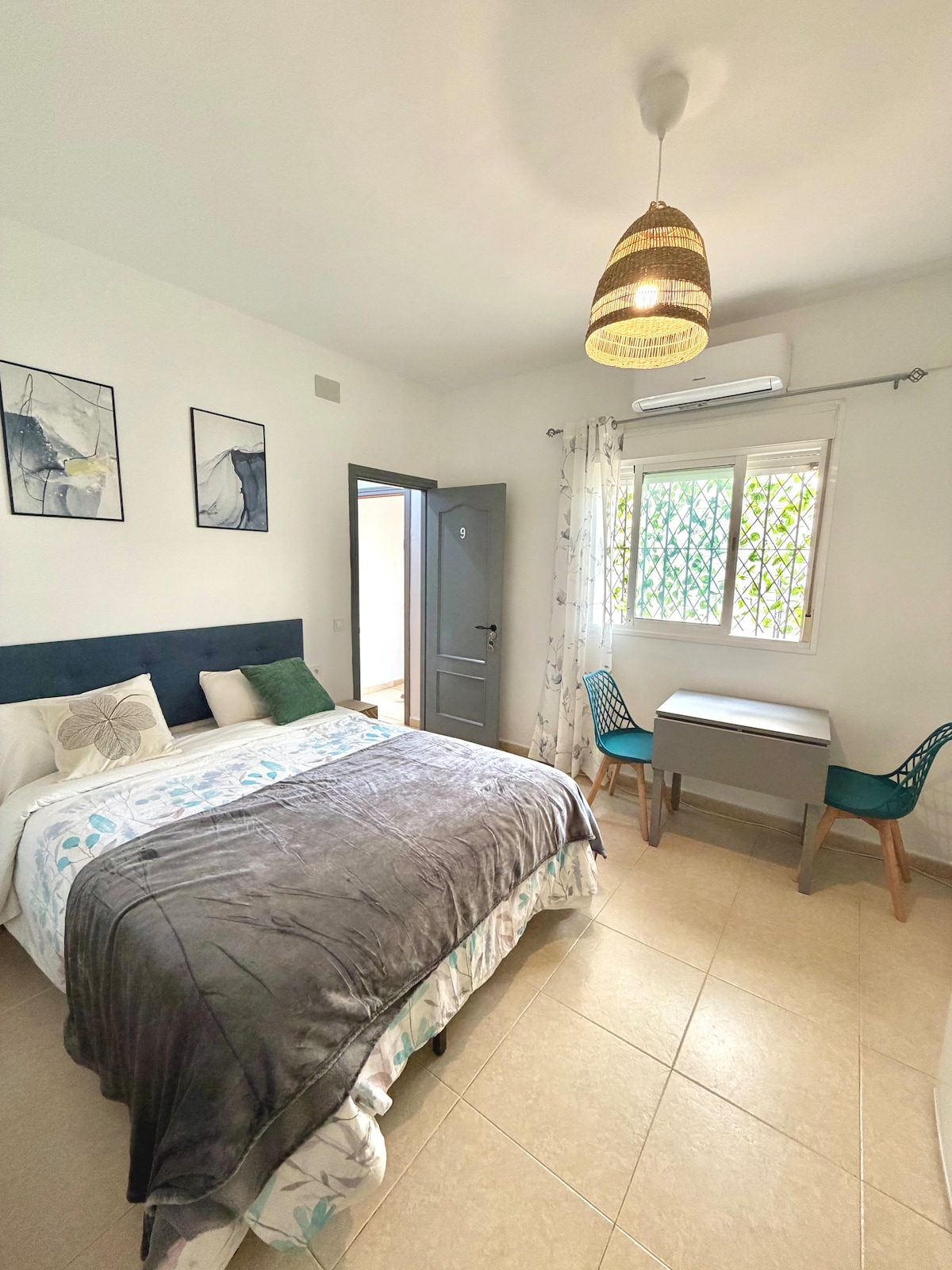 Studio with a double bed and a 2-seater sofa bed, with everything you need to enjoy a comfortable stay. There is a folding table for 4 people and 4 folding chairs. It is simply and efficiently decorated. It is a semi-basement with natural light and double security window with interior lock. It is located in a very quiet residential area and a 10-minute walk from the historic center of Malaga. With several supermarkets, pharmacy, public hospital, etc.