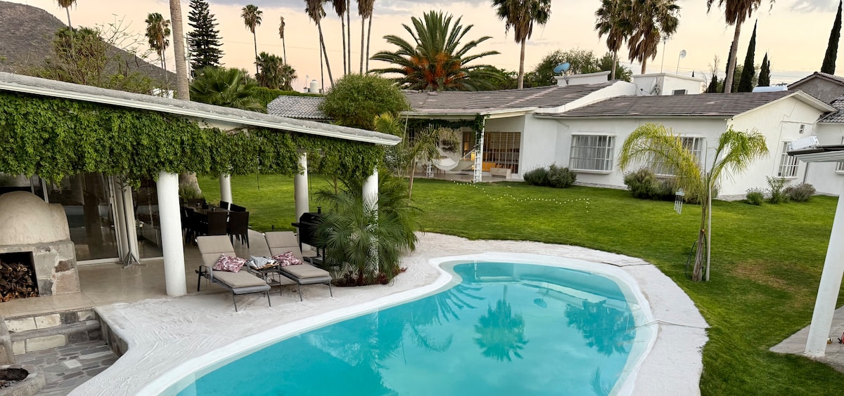 BEAUTIFUL HACIENDA-STYLE HOUSE WITH A POOL. EXPERIENCE UNFORGETTABLE SUNSET VIEWS FROM ITS LARGE ROOFTOP WITH SPECTACULAR VIEWS OF THE LAKE AND GOLF COURSE. REST IN ITS LARGE AIR-CONDITIONED ROOMS WITH VIEWS OF THE GARDENS FULL OF FRUIT TREES. ENJOY ITS LARGE GARDENS AND ARTIFICIAL LAKE. FEEL THE TRANQUILITY AND SECURITY OF STAYING IN THE MOST TRADITIONAL NEIGHBORHOOD OF SAN MIGUEL DE ALLENDE WITH 24-HOUR SURVEILLANCE. ONLY 3 MINUTES FROM THE CENTER.