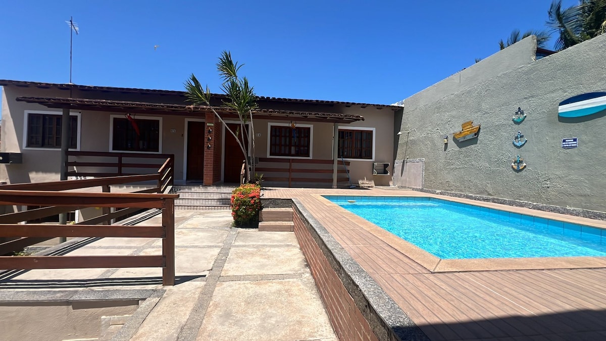 Stunning house in Enseada Azul, Guarapari-ES. Ideal for families, accommodates up to 10 people, with 4 bedrooms (2 en-suites). The house offers a swimming pool, sauna, gourmet area with barbecue and free Wi-Fi. Complete house with bed linen and towels. The house has air-conditioning in all the bedrooms. The house has a pet cat. It is located just 5 minutes from the beaches of Peracanga and Bacutia, providing easy access to the best of Guarapari. Ideal for family fun!