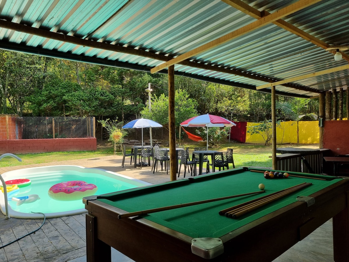 There are two houses on the property, the advertised price is only for the MAIN HOUSE (up to 15 people) For 25 people, it is necessary to rent the house below as well. *The rates for Carnival, Christmas and New Year are already calculated for up to 25 people.* We have the option to rent one or both houses (the price changes). If you allocate only one of the houses, the other is closed; we do not rent to two groups of people at the same time. A very wooded site, with a beautiful landscape. With heated pool and fiber Internet.