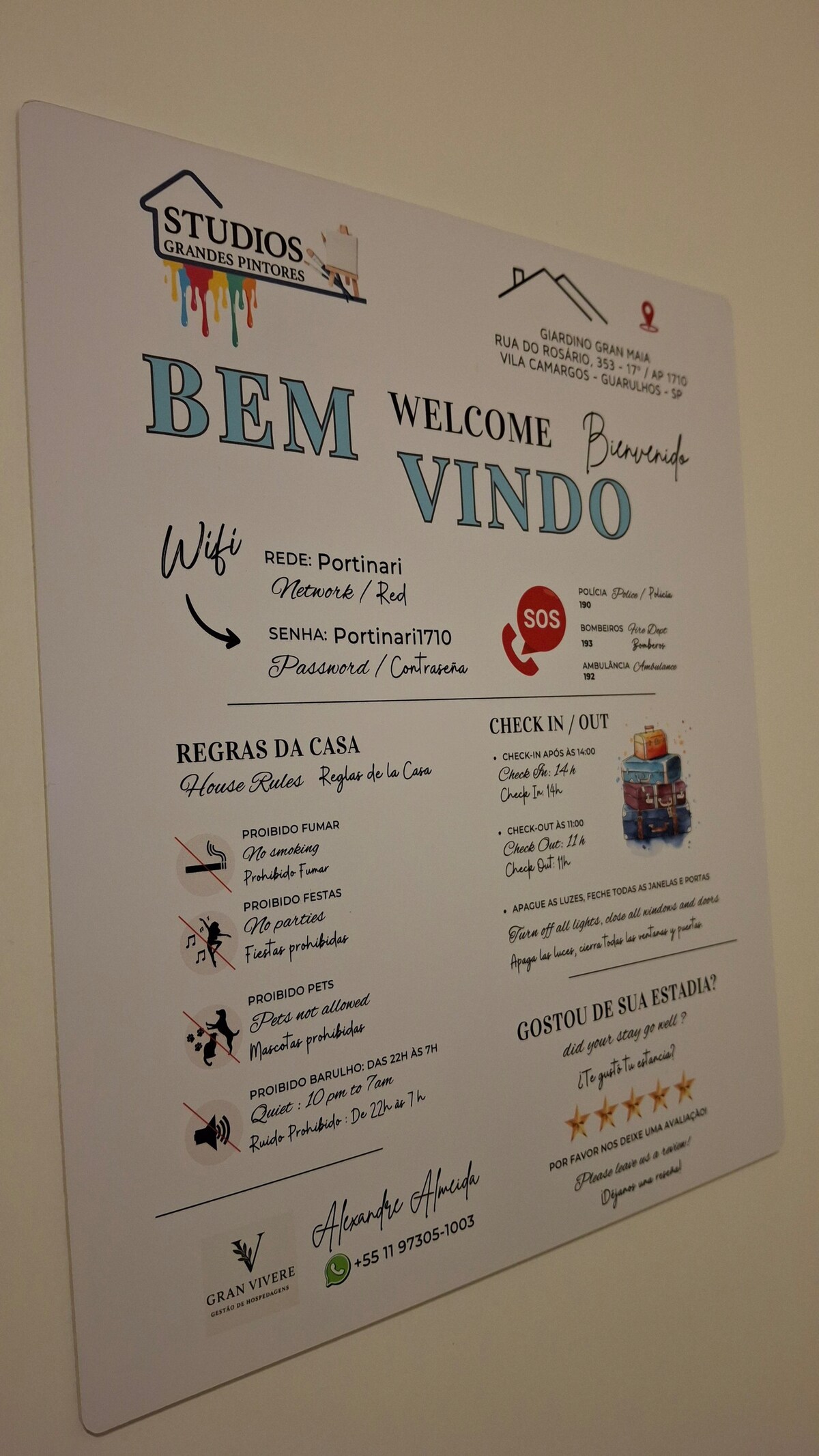 Studio moderno e luxuoso no Gran Maia Giardino, em Guarulhos. Ideal para curtas ou longas estadias. Acomoda até 03 pessoas com cama Queen e sofá-cama (crianças) Cozinha equipada, ar-condicionado, sistema de som Bluetooth. Condomínio com piscina, academia, playground, brinquedoteca, lavanderia, pet friendly, mercadinho 24h e estacionamento gratuito. Localização central privilegiada, fácil acesso às principais vias da cidade, a 7 km do Aeroporto GRU e próximo a shoppings, farmácias e restaurantes.