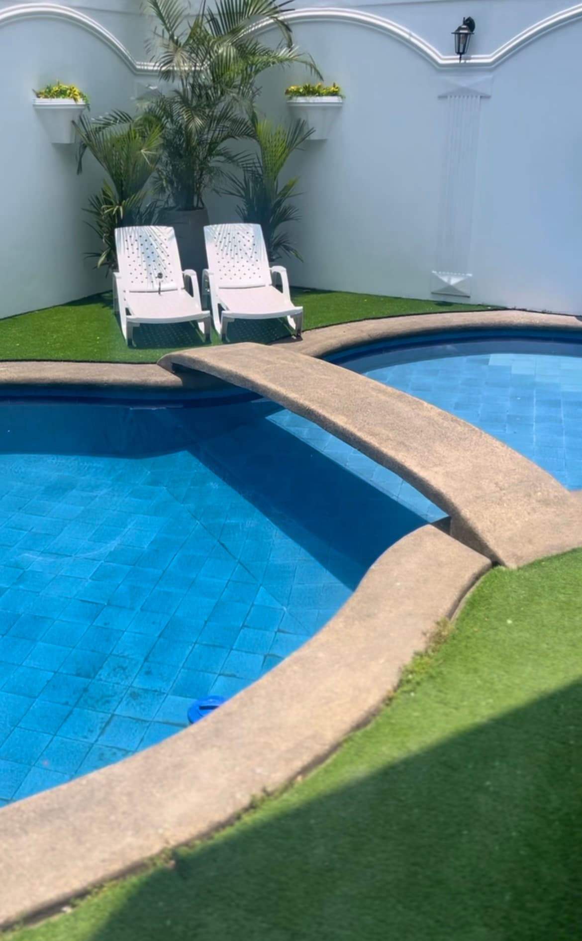 Enjoy a master bedroom with a king size bed and a 65-inch TV. It has direct access to the pool and the social area. A private and discreet place with trained staff to give you the best care 24/7.