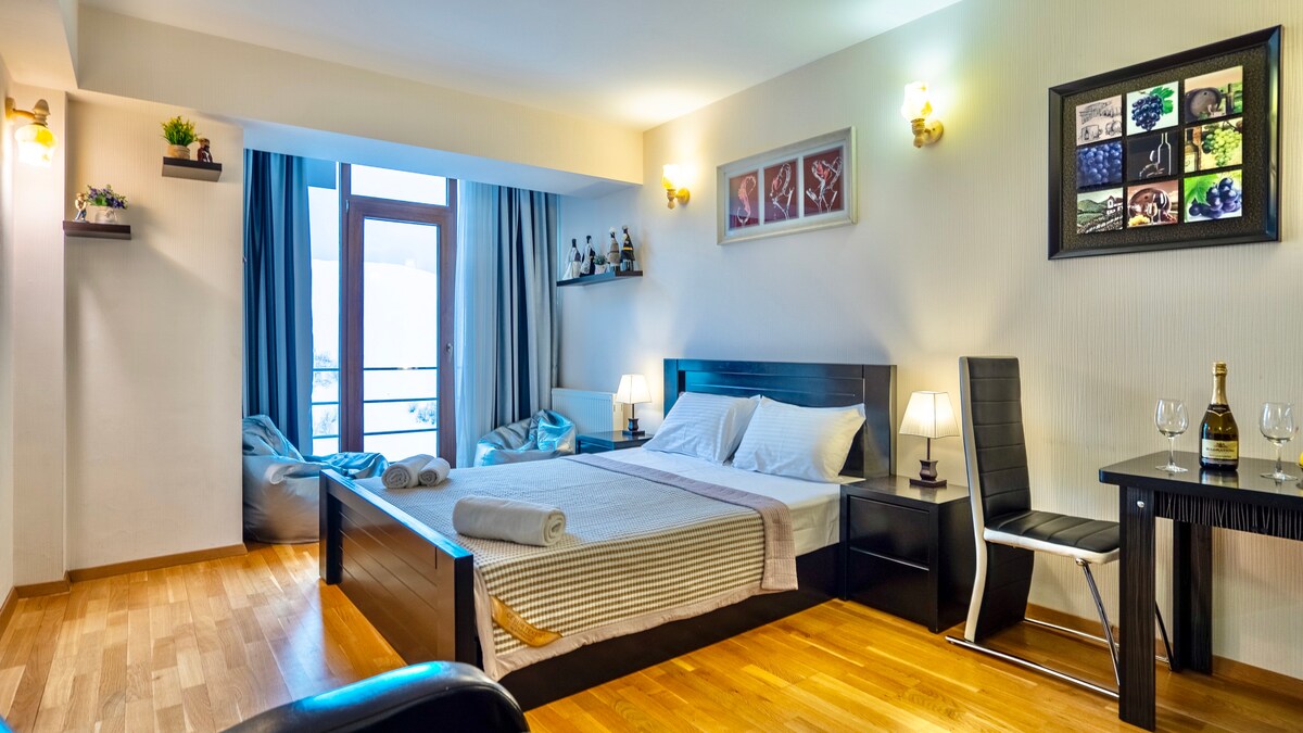 This beautiful Apartment is located in Heart of New Gudauri, walking distance from the main Ski lift, "Gondola"! A queen-sized bed with sleep-promoting mattress and comfy double-sized sofa , with a fully stocked kitchenette for home cooking, board games and amazing cozy atmosphere.