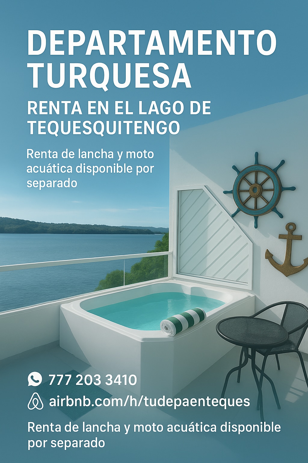 Disfruta en Vista Coqueta Loft un espacio moderno con hermosa terraza panorámica del Lago de Tequesquitengo. Un alojamiento ideal para 4 personas, máximo 6, con 1 recámara, 1 baño, 2 camas matrimoniales, 1 sofácama. Acceso gratis al balneario de Playa Coqueta. El balneario cuenta con acceso al lago, alberca, restaurante, renta de lanchas y equipos náuticos. Disfruta al máximo nuestro horario extendido de 12:00 hs. la llegada y salida a 17 hs. *Ubicado en el 4to piso con acceso por escaleras*