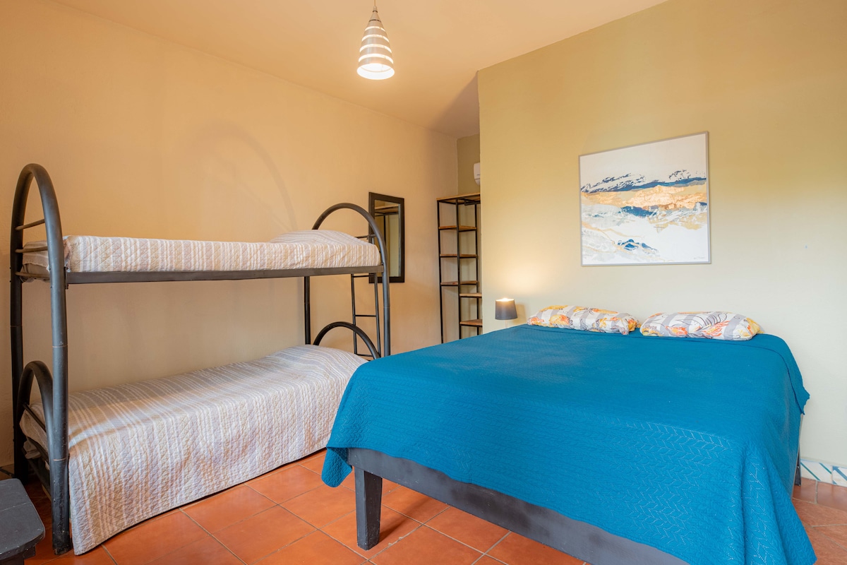 No querrás irte de este lugar tan único y encantador, excelente ubicación frente a la playa y lleno de naturaleza! Habitación en planta alta,cuenta con dos camas, abánico, minibar,Tv con cable,baño y ducha anexo en planta baja totalmente privado.