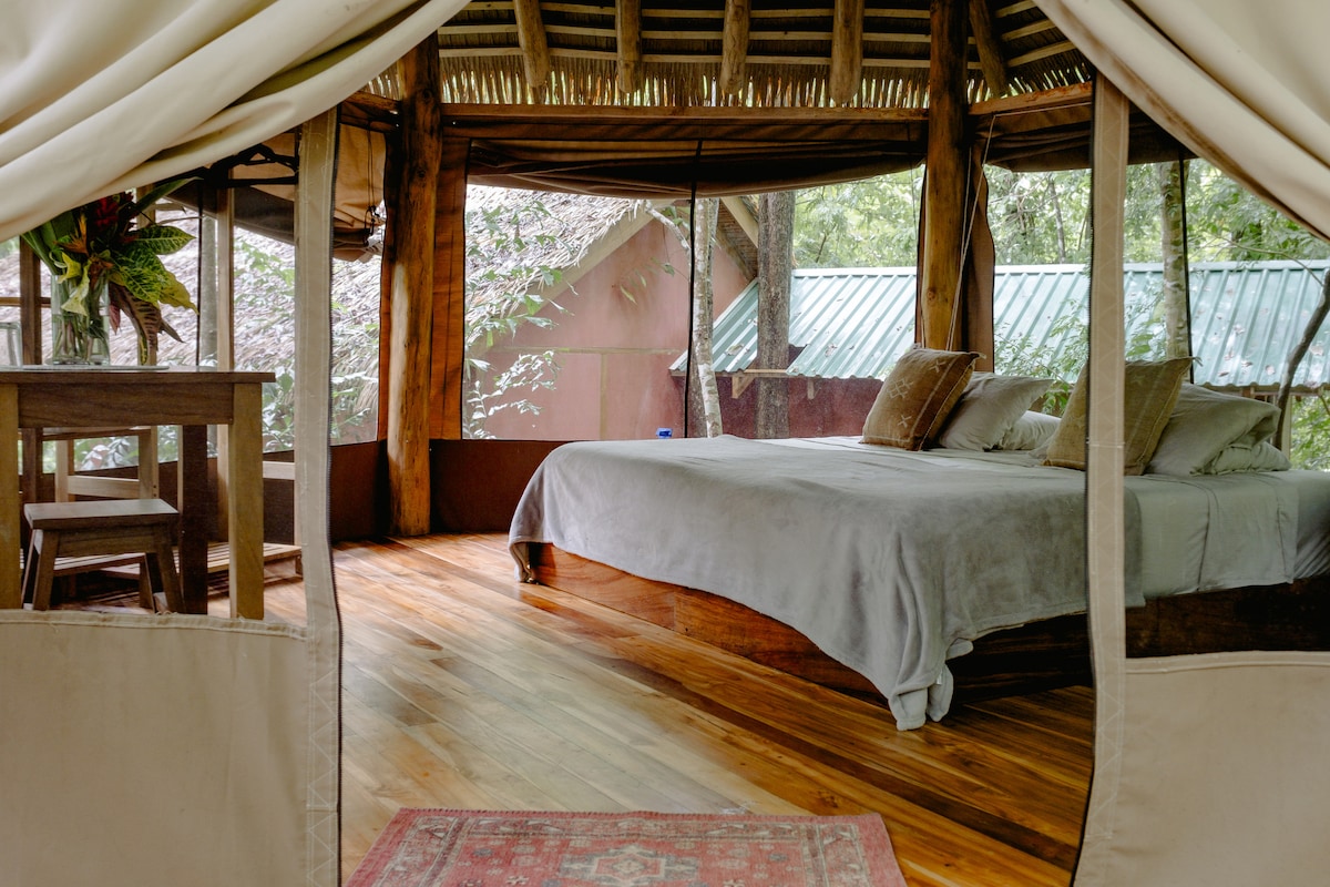Close to Arenal Volcano! Live a one-of-a-kind experience in our eco-glamping "Bamboo" in the middle of the Costa Rican jungle. Wake up to the singing of exotic birds and immerse yourself in unspoiled nature during your hikes. Observe the lovely sloths and savor exquisite dishes at our restaurant. Breakfast is included. Come and discover tranquility surrounded by nature. PROTIP: Check the availability of massages, yoga, and other experiences. Book today!
