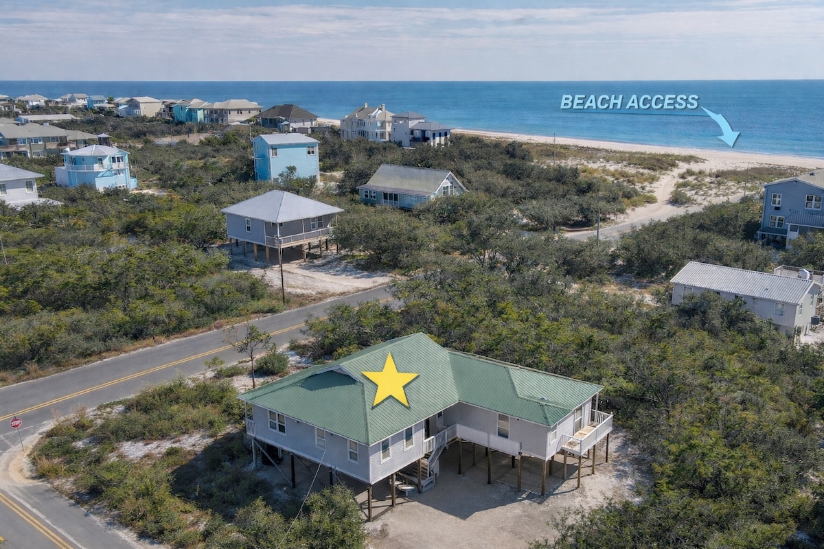 ✔ Directly Across From Beach ✔ All Dogs Welcome, Dog-Friendly Beach ✔ 4 Bedrooms, 2 Bathrooms – Sleeps Up to 10 ✔ Unobstructed Ocean Views from Wrap-Around Deck ✔ Full Putt Putt Course & Corn Hole Under the House ✔ Spacious Deck with Adirondack & Lounge Chairs + Outdoor Shower ✔ Beach Wagon, Chairs, Toys & Boogie Boards Provided ✔ 5 Minutes to Local Restaurants, 20 to Downtown Gulf Shores ✔ High Chair, Pack ’n Play, Linens, Towels & Soaps Included