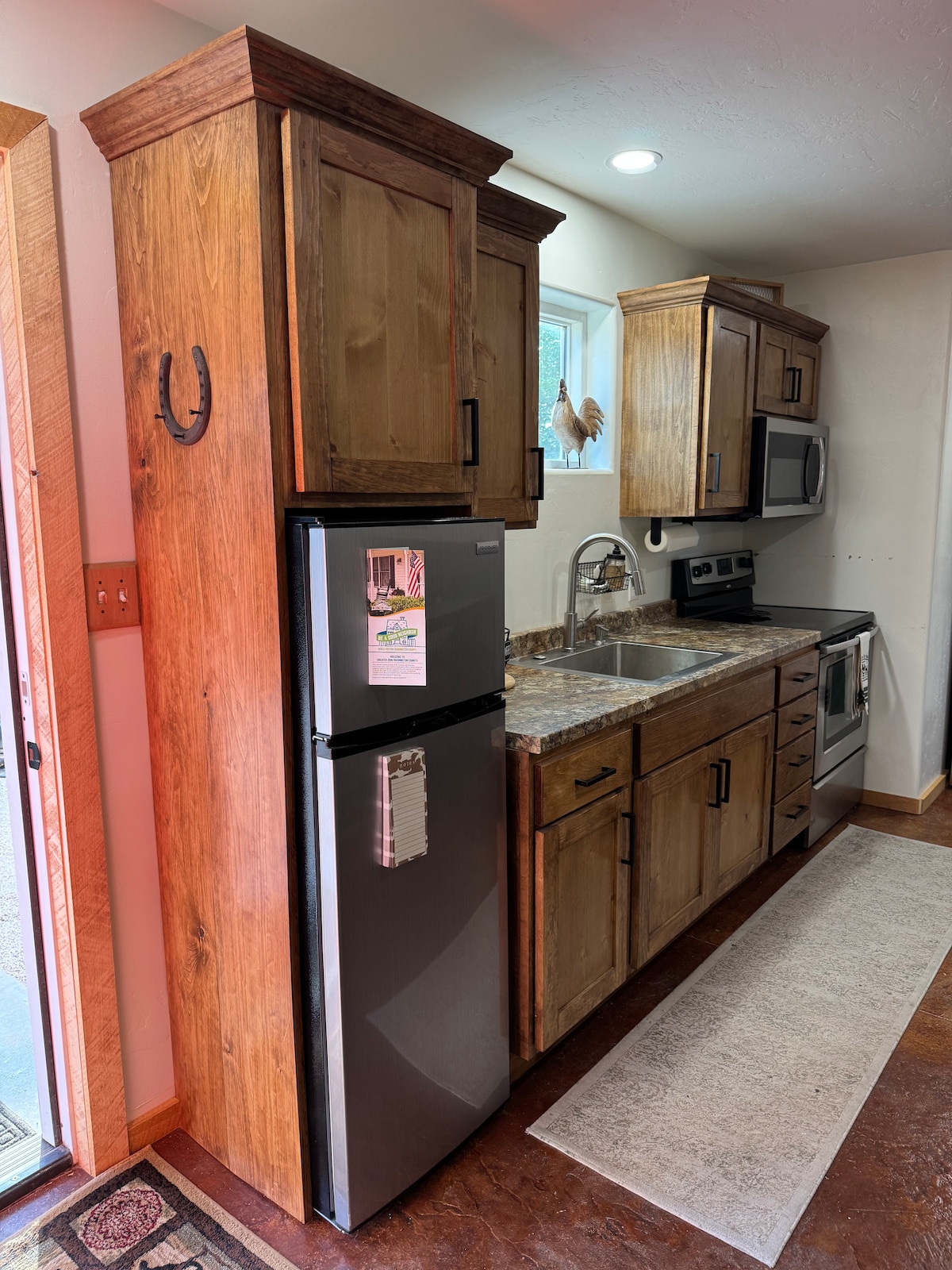 Newley rebuilt! This thoughtfully designed Barn blends rustic charm with clean, contemporary finishes, creating a space that’s both stylish and welcoming. Inside A king master bedroom and a loft that includes two full and two twin bed nooks, means there’s plenty of room for couples, families, or small groups to relax and recharge. One full bathroom, a fully equipped kitchen, and a cozy living area complete the inviting interior.