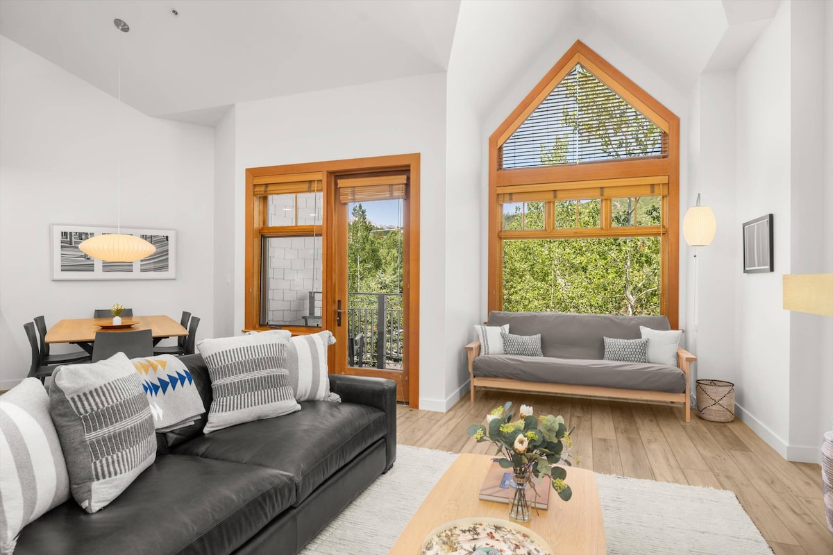 Stay in tasteful luxury just steps from Snowmass Village Express and Snowmass Mall. This beautiful studio condo is exquisitely furnished with an effortless blend of rustic and modern finishes, with tons of natural light from its six large windows. No need to drive to the ski hill! Put your gear on at the unit and walk just 100 feet to the slopes. In the summer, there's equally easy access to the best hiking and mountain biking in Snowmass. Welcome to your own alpine Paradise!
