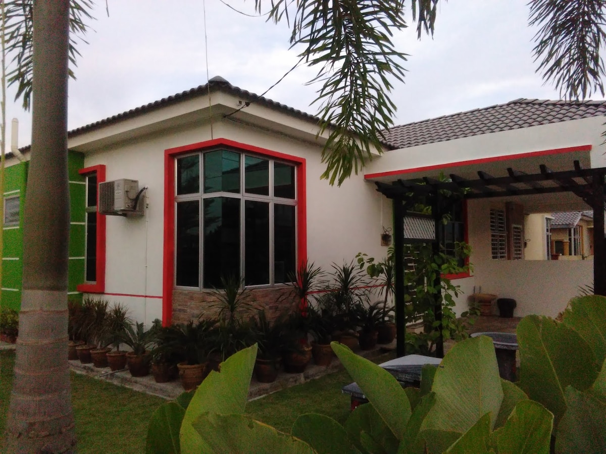 3 Bedrooms Semi D Single Storey House ๐ Master room: Queen bed attached bathroom + 2 Sejadah ( praying matt ) ๐ Room 2: Queen bed ๐Room 3: Super Single bed (Room 2 & 3 share bathroom) ๐จโ๐ฉโ๐ง Comfort for 5, max 8 person ๐๏ธ Extra floor mattress available upon request (additional charge applies) โ๏ธ Air-Con in all bedroom + living and dining area ๐ถ Free Wi-Fi ๐ณ Kitchen: fridge, induction cooker, bread toaster, water filter (hot/cold), rice cooker, hair dryer, iron and board