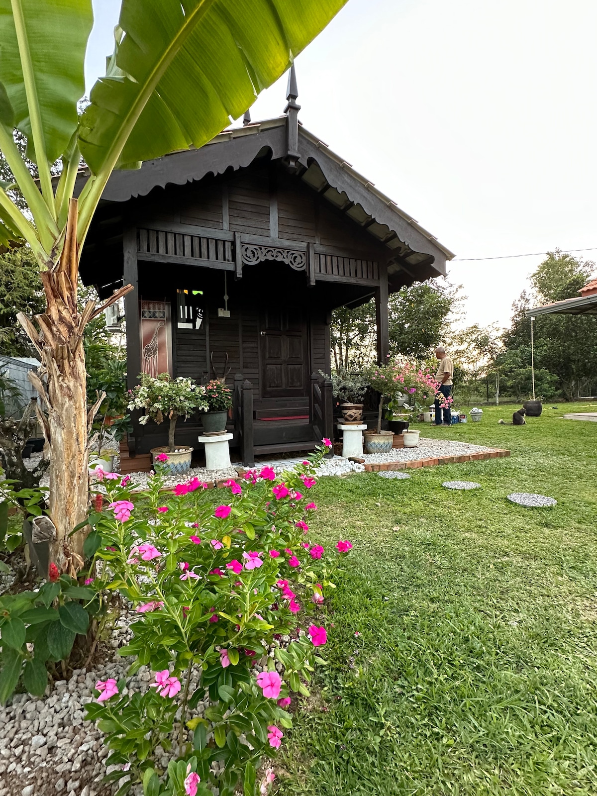 A vintage wooden chalet with veranda made of solid wood of yesteryears, crafted to perfection with a rustic finishing. #RuangKita is a private peaceful space located in the compound of a family home in Bukit Bayu neighbourhood, Sg Lalang, about 15 min from Sg Petani. The place sleeps two adults / a small family. It comes with attached bathroom, small fridge and tea making facility. Other amenities include wifi, TV, washing machine (upon request) We look forward to welcoming you at #RuangKita
