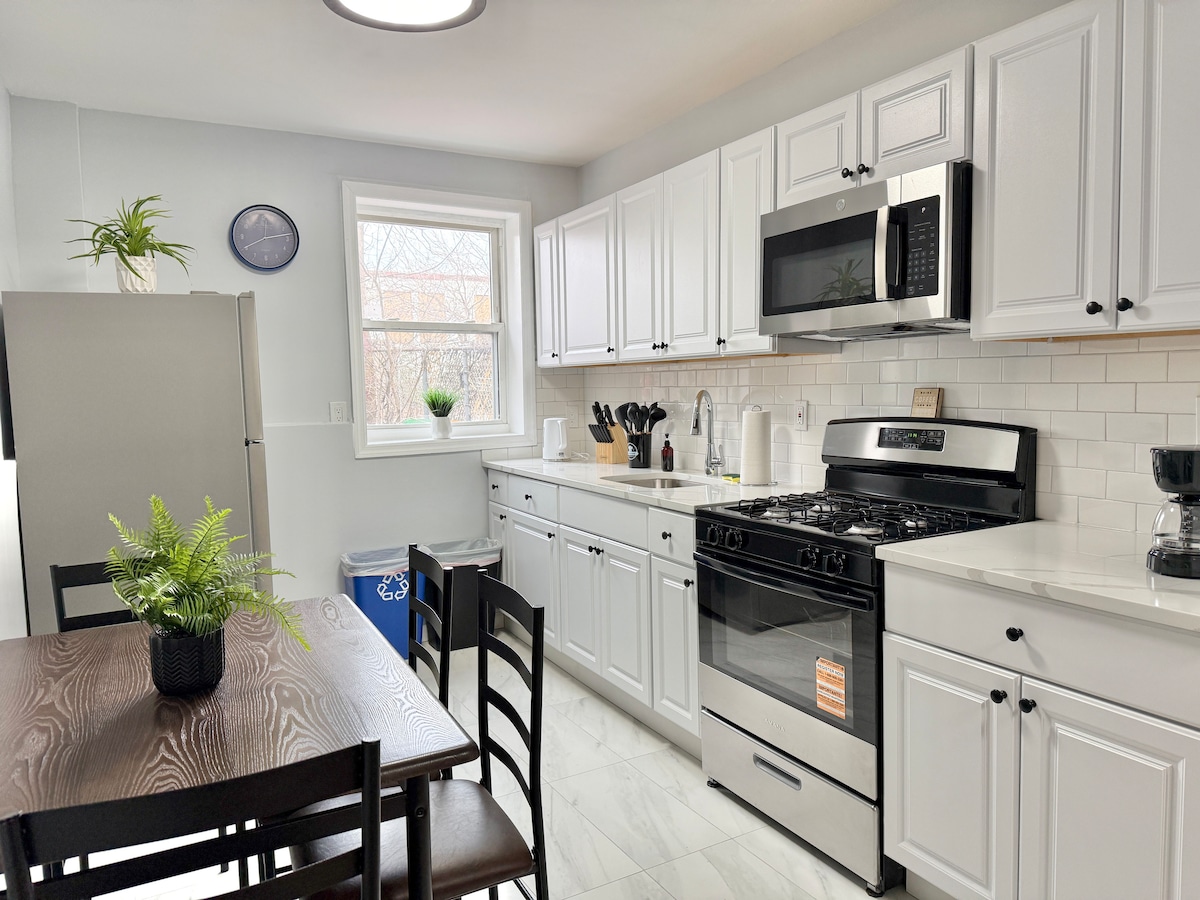 Relax in this newly renovated, spacious apartment in a quiet and safe New Jersey neighborhood, just 20 minutes from Manhattan. With convenient public transportation nearby, you’ll enjoy quick access to Times Square and top NYC attractions, while coming home to a peaceful retreat after a day in the city.