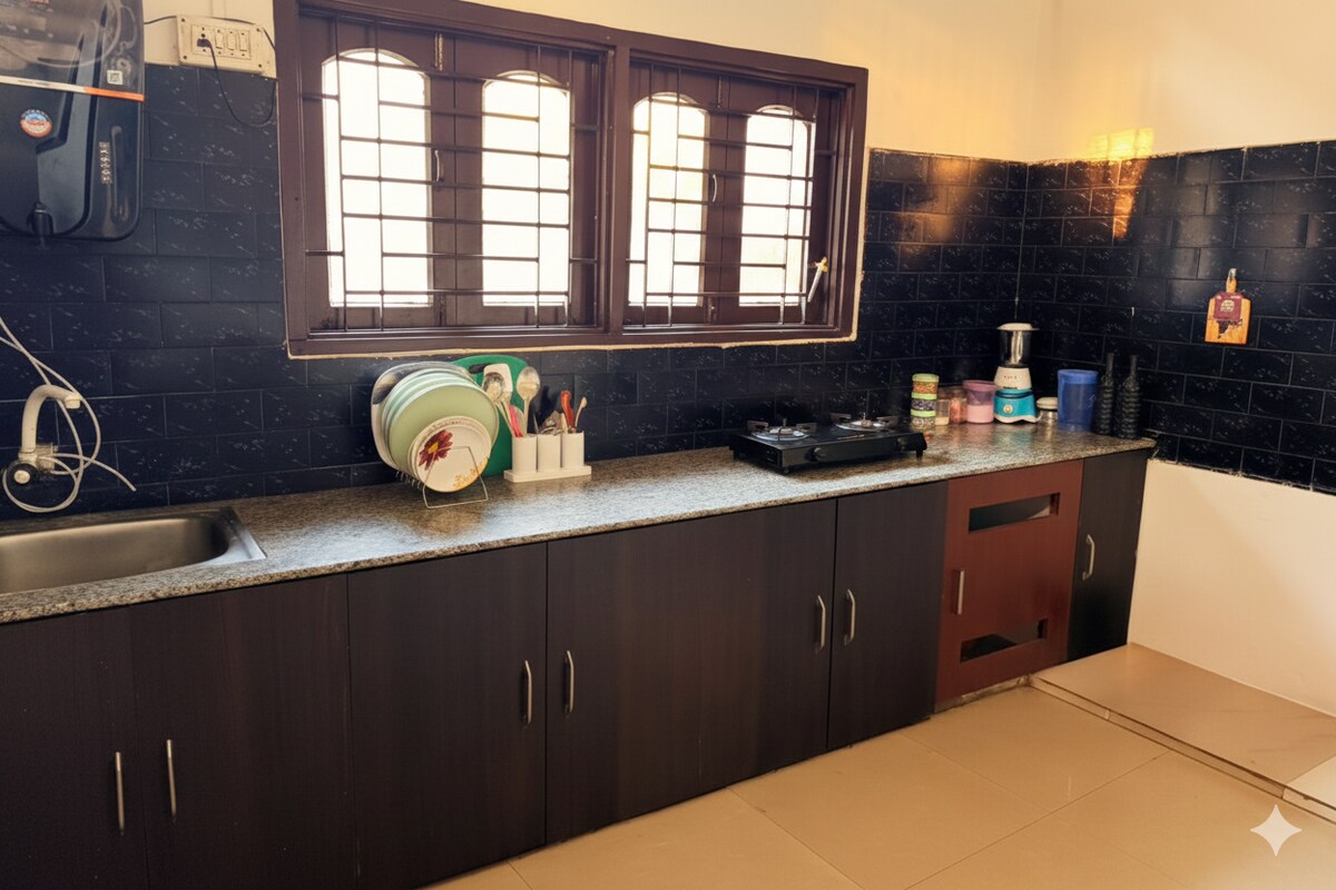 Welcome to our charming 2BHK homestay — a serene retreat designed for comfort and relaxation. Located at the 2nd floor of a G+2 building (no lift facility). The space features two tastefully furnished bedrooms, a cozy living area, and a well-equipped kitchen, creating the perfect blend of style and convenience. Located in a peaceful neighborhood with easy access to local attractions, it’s the perfect choice for families, couples, or business travelers seeking both comfort and elegance