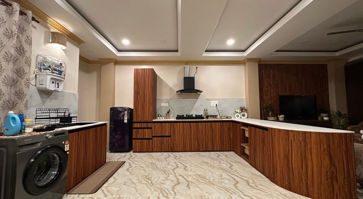 Wake up to a hilltop view of Guwahati's skyline! Geminia is a centrally located, fully air-conditioned 2BHK apartment in the heart of Guwahati. Both bedrooms AND the living room have their own ACs. Warm and distinctive- rich wooden panel ceilings, curated lighting, and a living room that feels like an actual home. Perfect for couples, families, business travellers, and anyone planning an extended stay. Consistently rated 5 stars for cleanliness, location, and comfort by guests.
