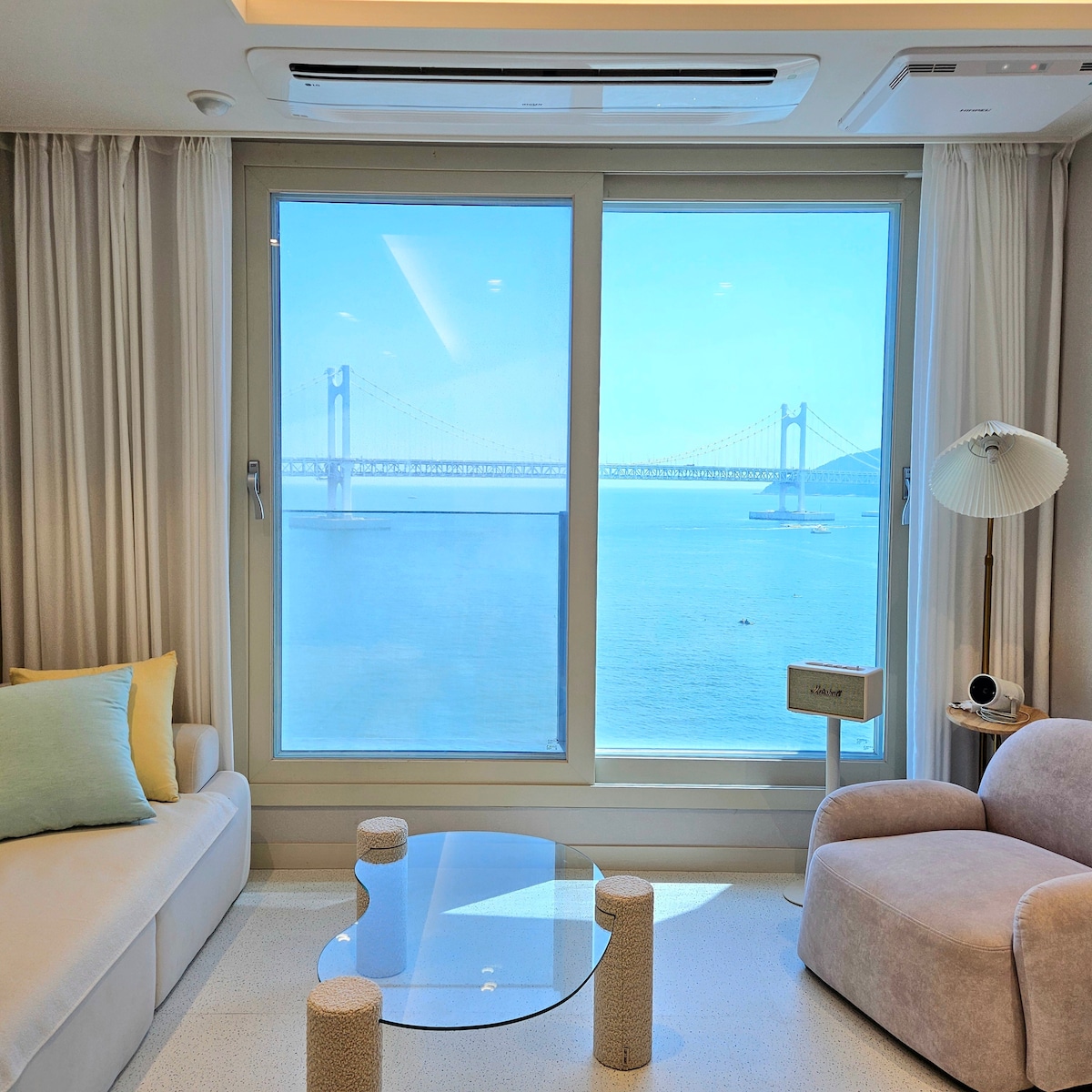 Diamond Bridge accommodation, the nickname of Gwangan Bridge, is the closest place to Busan to enjoy the view of Gwangan Bridge. It is a stylish new accommodation where you can experience the best view of Busan, including Dongbaek Island in Haeundae and Igidae in Yongho-dong. Within a minute's walk, you'll find Gwangalli Beach, the largest raw fish center on the Ginest Book, a waterfront park, and Starbucks. I thought of a space where you can escape from the tired daily life and relax. The uniqueness and passage of space can give momentary satisfaction and sensibility, but it won't stay long. We tried to create a harmonious space that does not disturb the beautiful view, with the comfort you feel during your stay and the subtle and long-lasting sensibility. During your stay on a trip that you have planned with difficulty, you will fall into the wonderful sea and space of Gwangalli as a scene.