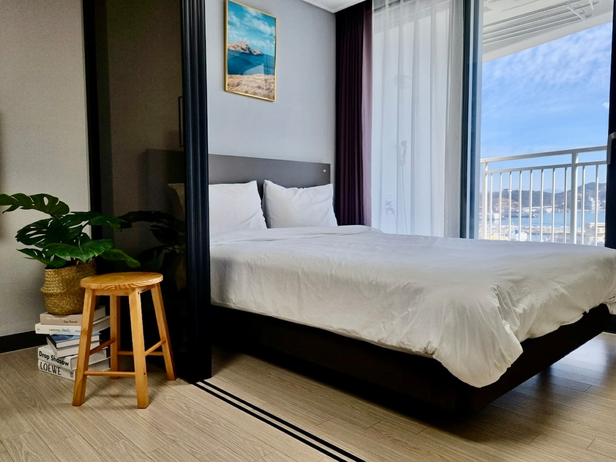 🍀🍀 "Marina Port" Terrace Ocean View Accommodation Welcome~~ ^😍😍🍃🍃🍃🍃 ¤ Inquiries-> Please contact us via Abnb message or ☎️ 010 9977 3819. ⚘️ A new marine tourism city located in the center of Yeosu Clean and quiet surroundings.👍 ⚘️ Accommodation in the center of Marine City in Uungcheon🐬🐬 (Netflix, YouTube, Disney Plus available: ID required) ⚘️ Newly built residence hotel with a clean building "Full option accommodation" On a 3-pyeong "spacious terrace" specialized⚘️ only for the accommodation floor A large outdoor table is provided, allowing you to enjoy the beautiful marina view. Food can be eaten on the outdoor terrace (Chimac Good)👍 ⚘️ Cooking & laundry available with various amenities in the accommodation ⚘️ Things to enjoy: Beach near the accommodation & Yi Sunshin Park. Jangdo Island walk. Marina facilities "Ungcheon Seawater Mud Market" (Chinsu Park), Marine Activity, Yacht Tour, etc. ⚘️ Food: Many cafes and restaurants within walking distance (1-minute walk to convenience store. Large food mart available) ⚘️We will always strive to manage a pleasant accommodation💕💕