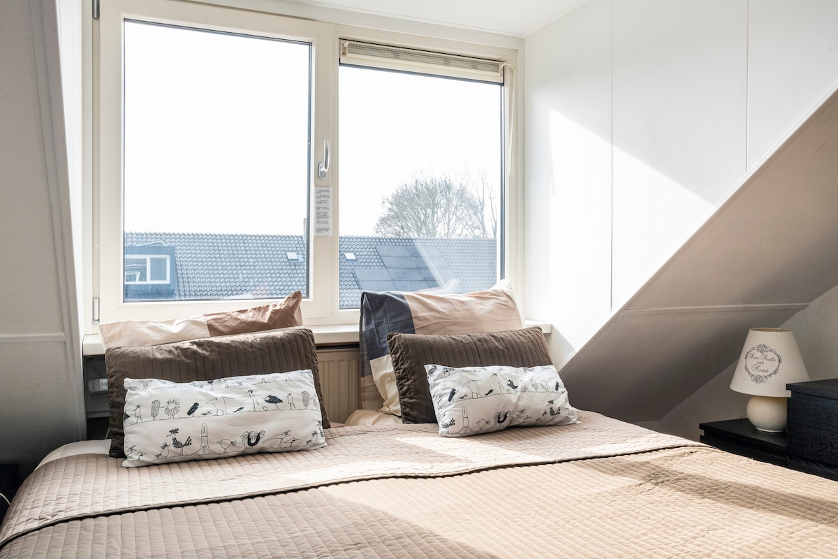 In a beautiful stylish detached villa, we rent out our attic apartment with two bedrooms, living room, kitchen, and bathroom. This space is very spacious and has lots of light through the skylights. You have your own bathroom and kitchen. Breakfast is purchased but must be prepared by yourself. You enter the house through a common entrance and then go up two stairs to the apartment in the attic. You can use the garden. The house is in the center of Heemstede