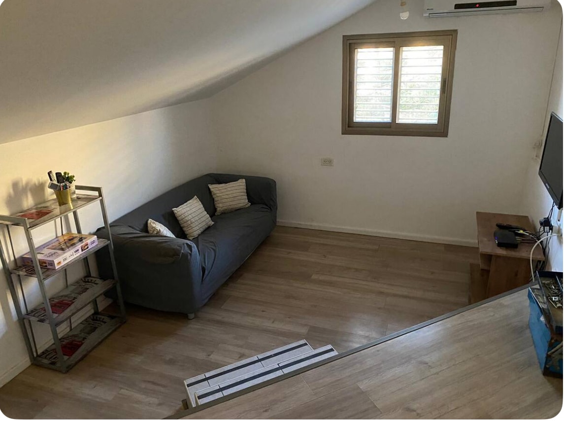 Take everything easy on this unique and peaceful vacation in the forest in the middle of the country. A separate unit in front of a green view. In a religious moshav halfway between Jerusalem and Tel Aviv. Unit with separate entrance (stairs), bedroom with double bed, bathroom, living room and kitchenette. A sofa that opens to a double bed. A huge balcony facing a stunning view of a green forest. It´s a beautiful walk from the unit to the forest. The gate of the moshav is closed on shabbat.