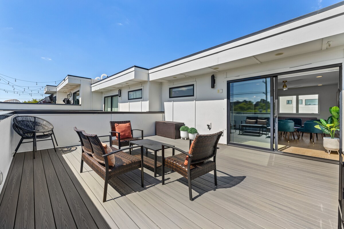 Modern Home Rooftop Deck- Walk Coffee, Restaurants
