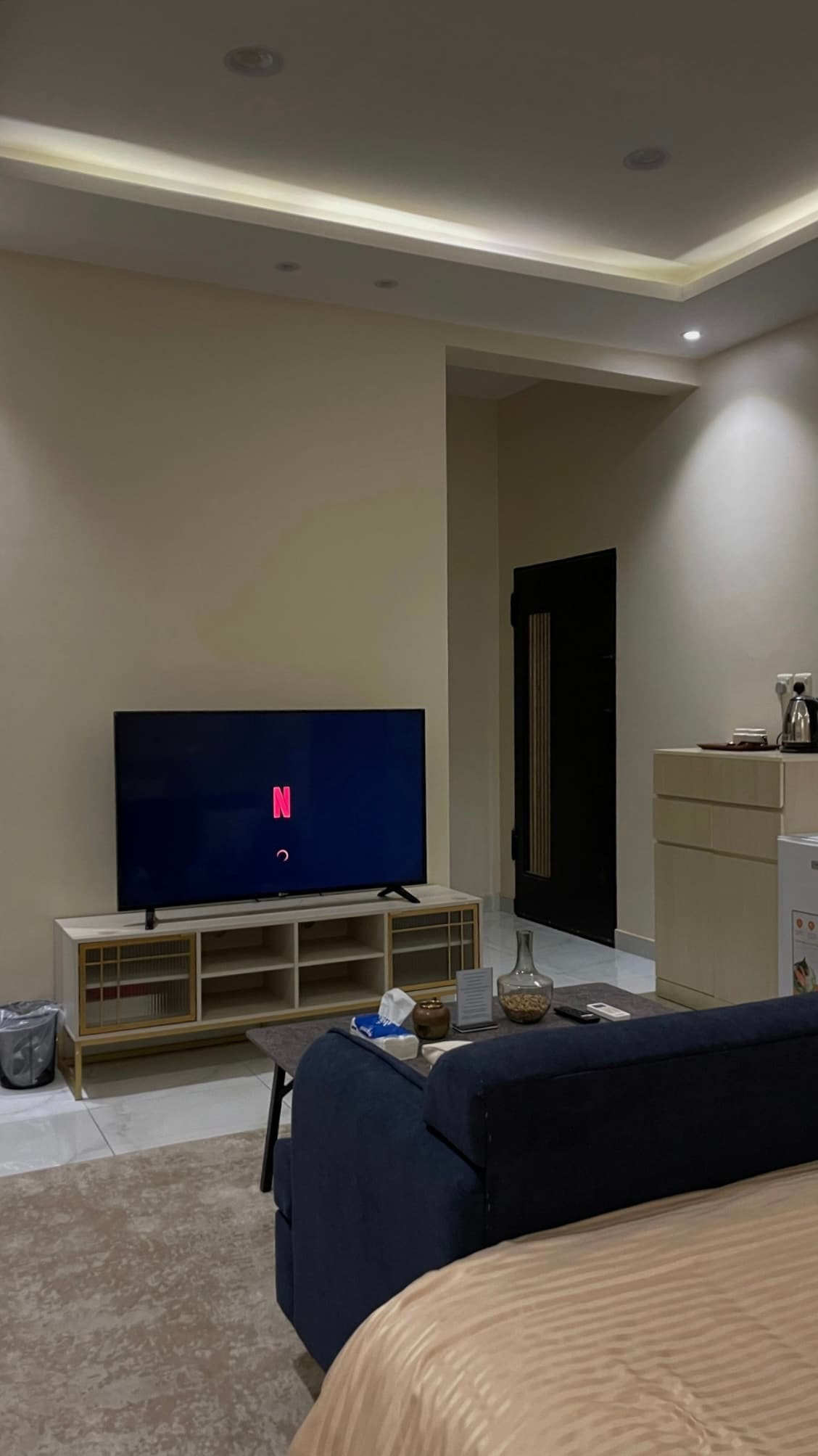 A stylish hotel apartment with a modern design and high-end décor, centrally located on the Ring in Hail. Featuring a spacious lounge with a luxurious magnet that adds exceptional comfort and style with a large screen connected to all viewing programs, a comfortable bedroom with a luxurious bed and a distinctive design, and a modern bathroom equipped with all the essential supplies. There is a practical kitchen with a microwave, a kettle, a coffee maker, v60 preparation tools and a mini fridge to cater to all your needs. We provide you with fast internet, high hygiene, and a quiet atmosphere that gives you a privileged stay whether for a business trip or a short vacation