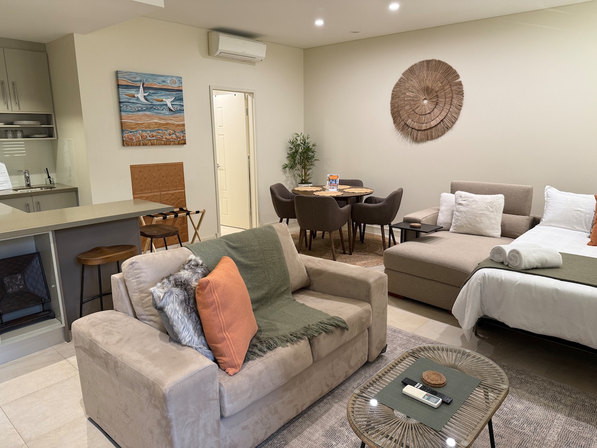 Generously self-contained holiday apartment right in the heart of Mandurah. High quality furniture, bedding and appliances, Internet, Netflix. Centralised cooling and heating aircon. Spotlessly clean in a small complex designed for Mandurah Family Holidays. Perfect location for families-couples-work travel. Stroll to everything Mandurah has to offer in under 5 minutes walk-Cafes, Pubs, Restaurants, Dolphins, Cruises, Marina, Shopping, Beaches, Swimming, Crabbing and Fishing all on the doorstep