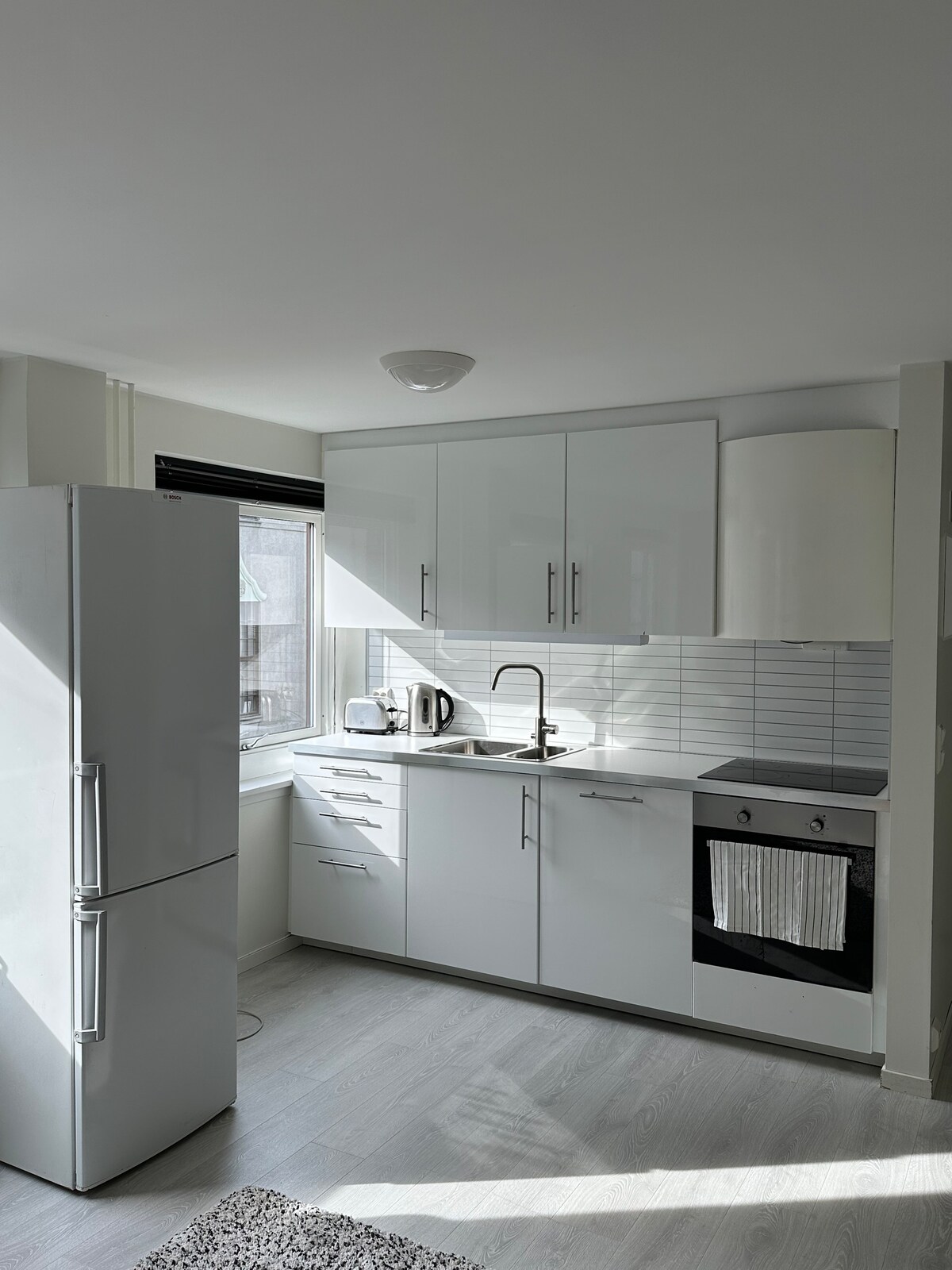 A 2019 apartment with large bathroom, bedroom and living room/kitchen solution. Private entrance from the back of the house, and access to parking on the front of the house. The rest of the house is inhabited by us, and we have three children who can produce some footsteps. Otherwise, the studio is separated from the house with a fireproof and soundproof door, which is locked with a key. TV only has the option of AirPlay, and no apps/channels