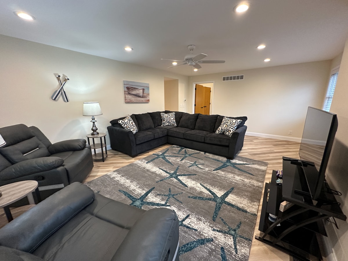 All new in 2018, fresh & new. Comfortable furniture. All new floor coverings . SECURE wifi, New full kitchen with stainless microwave, fridge & range, spacious living areas. Bedroom with king size bed & wall of closets, 2 smart TV's with antennas. Serta couch/full size bed. 2.9 Miles from McLaren Bay Region, 1.7 miles from Consumers Karn, 1 mile from Smith Park boat launch & waterfront park, 3.4 miles from The City Market & Downtown Bay City. Private parking, porch and 3 season room.