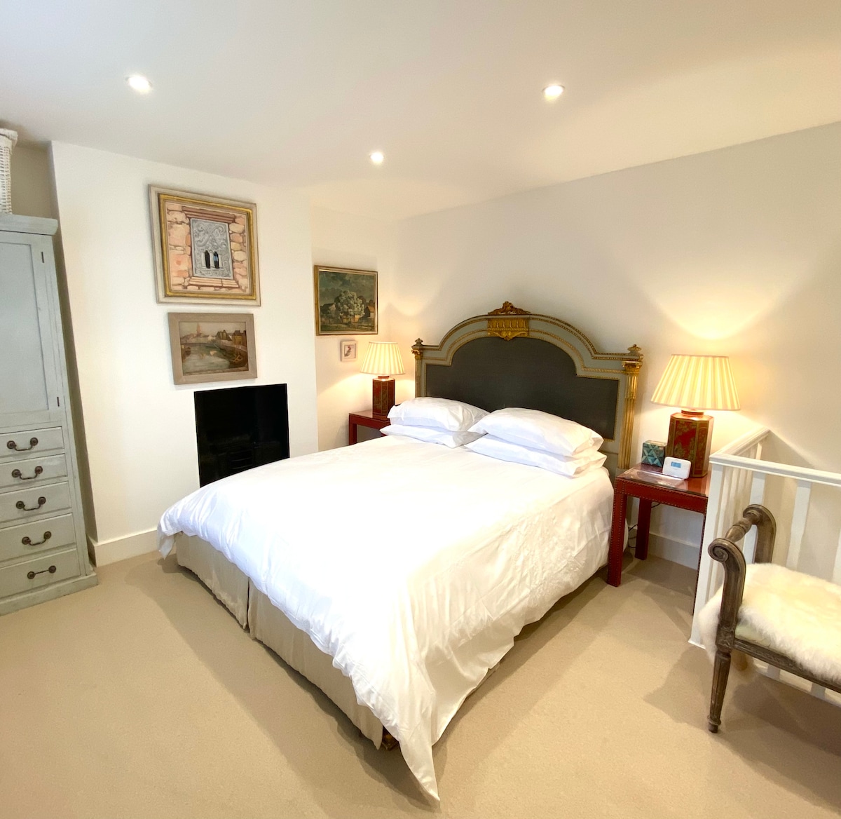 Delightful detached barn crafted from French oak in a peaceful private lane on a gated country estate. Luxuriously appointed with full facilities for a short break or longer stay. Air Con. Free EV charging point. Many public footpaths close by. Local shops are only a 10 minutes stroll. Gastro pubs, restaurants and independent shops within easy walking distance. A short drive from M25 (J11). Fast rail links to London from Woking. LGBTQ+ friendly. Friendly Spaniel and Siamese cat on site.