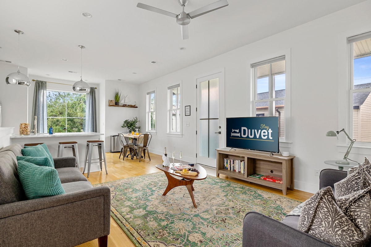 Whatever the occasion - we seek to elevate your getaway with our cozy 2 Bedroom (King/Queen), 1.5 Bathroom home. With a central location, navigating the town is made quick and easy. The home is conveniently located +/- 10 mins from the CHS Airport, +/- 20 mins from Downtown CHS and beaches, and about 2 mins from I26. Accommodations in the home include - fully supplied kitchen, washer and dryer, WiFi, Keyless entry, smart TVs (+streaming service), fireplace, parking spaces, games, and beach gear.