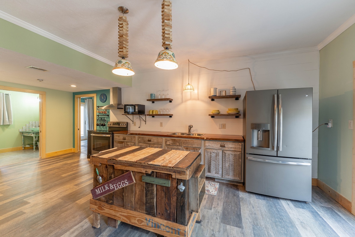 Welcome to a timeless retreat by the water - a century-old home that marries modern comfort with historic allure. The house boasts an abundance of original charm, featuring wood paneling, beams adorning the ceiling, and the original hardwood floor. The light and airy kitchen include quartz countertops, new cabinets, appliances, and luxury vinyl plank flooring. The spacious bedrooms, living area, and dining room are caressed by daylight, creating an ambiance that is both uplifting and soothing.