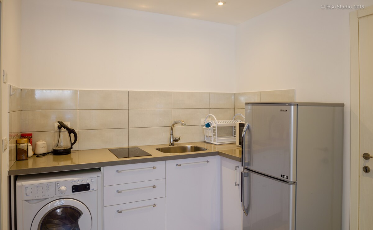 Very comfortable and well appointed studio apartment, fully furnished, with all the necessary things needed for life and a pleasant stay. Kitchen, dishes, refrigerator, electric stove, air conditioning, cable TV, Internet access, free parking, securi