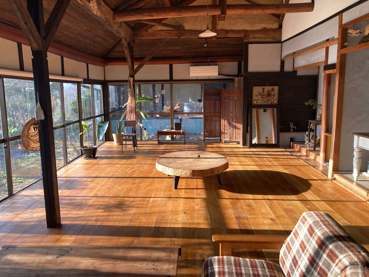 Toyotake Yashiki is a historic building built over 130 years ago. The corner of the space, which is cut off by the longhouse gate and the wall, It's a place where you can experience the feeling of time slipping away. This house, which has been preserved in its original condition without sash windows, When you open the wooden frame storm door and sliding door, a pleasant breeze blows through. Located in the eastern part of Suo Oshima, surrounded by the sea, it is particularly quiet and peaceful. and all you can hear is the sound of birds. A little distance from the busy everyday life, in this special space, Why not spend a special time thinking about eternity?