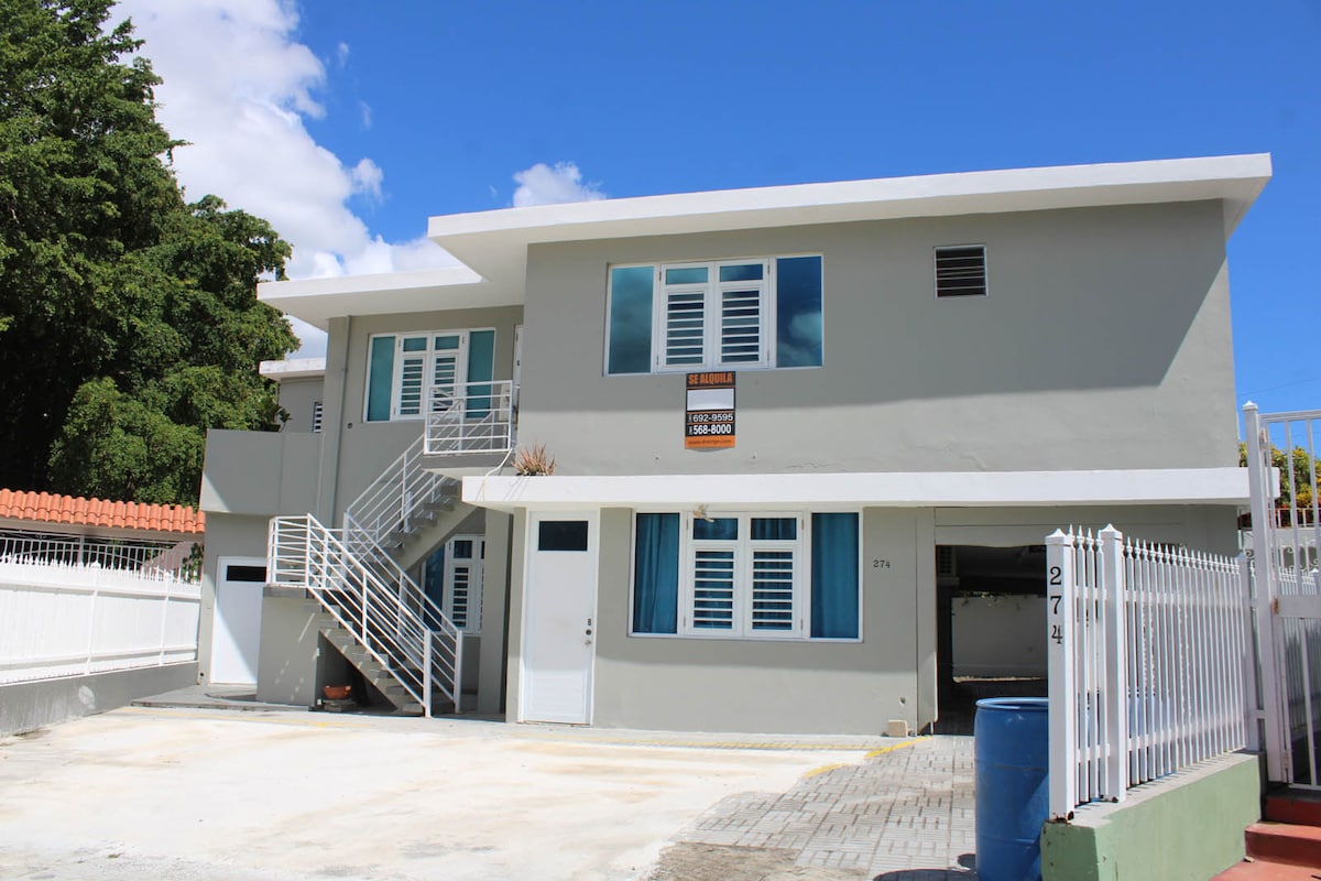 Centrico alojamiento ubicado en zona privilegiada y muy tranquila, a solo 1.2 millas de distancia del hospital centro medico de Puerto Rico, a pocos minutos de plaza las americas, Coliseo Jose Miguel Agrelot, Mall off San Juan, Viejo San Juan, aeropuerto Luis Muñoz Marín, Centro de Convenciones, playas, restaurantes. La propiedad ubica en un segundo piso tiene dos cómodas habitaciones, acondicionado en todas las areas , sofa cama y terraza con vista a la avenida.