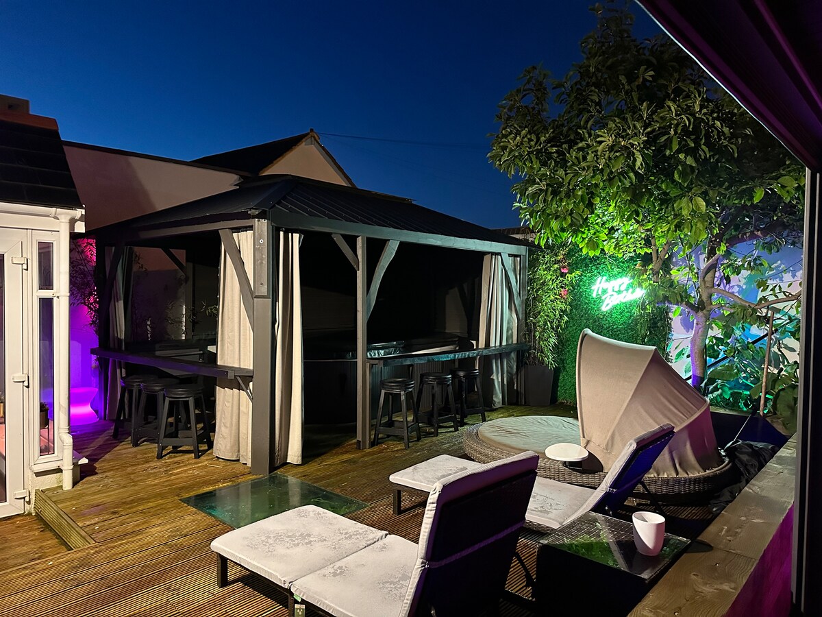 This stylish and unique place sets the stage for a memorable trip. It’s an ideal Birthday / Celebration venue This is your chance to indulge yourself with amazing “Wellness” facilities - “ amazing local restaurants, bars and close to Southsea beach. Access to indoor steam room sauna and ice treatments / £50 surcharge. Also guests can book outdoor hot tub / outdoor sauna for £25 pp. You can also access our celebration venue next door for free if it’s not booked packed entertainment and games.