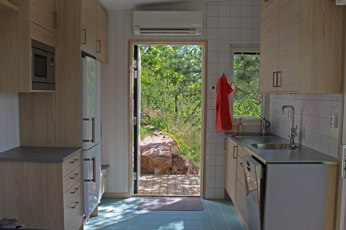 This accommodation is suitable for travel groups of up to 4 people. Travel bed is to borrow if needed. The accommodation offers a well-equipped and spacious kitchen, continental bed in the sleeping alcove (180cm), bedroom with bunk bed, dining area, bathroom with shower cubicle, TV corner with sofa, and of course a lovely fireplace to burn in if needed. The accommodation also has access to part of the lush garden with its own patio. The home and garden are smoke-free. Only allergy-friendly animals are allowed