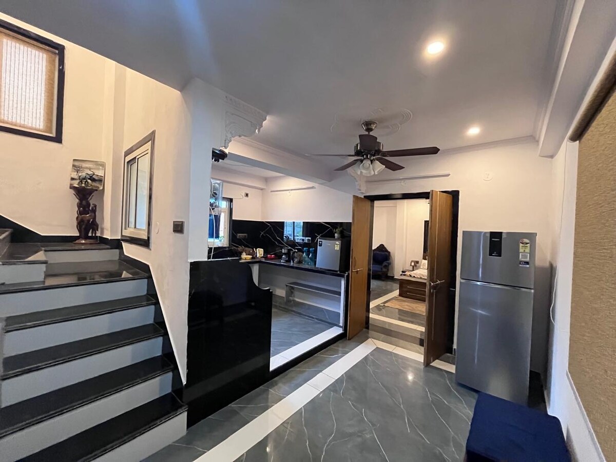 Message me to “UNLOCK A LITTLE SURPRISE”for your stay 😉 Welcome to Emerald – Your Luxurious 1BHK Retreat. Step into Emerald, a newly constructed, modern 1BHK flat designed for comfort, and convenience. Perfect for solo travelers, couples, or business guests, this elegant space offers a luxurious stay with all the essentials you need to feel right at home. Enjoy a fully furnished apartment featuring a spacious bedroom, sleek kitchen, cozy living area, and a pristine bathroom.