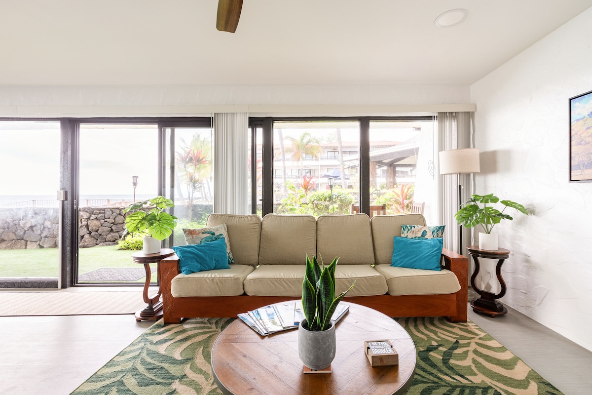 The Kona Reef is being renovated in 2026. Special construction rate of $295 per night! Reno hours 8a-5p Mon-Sat while you are out at the beaches, volcano etc. You’ll love this condo! Absolute Ocean Front. 5 minute walk to downtown. Free parking! Completely remodeled! Fresh, clean, stylish & comfortable. NEW Full A/C, Stocked Kitchen & Beach & Golf Equipment. ATTENTION GOLFERS! 2 sets of Callaway Clubs! Check out our 2 other Kona Reef condos D33 & B31 TA-109-936-6880-01 STVR-19-352037