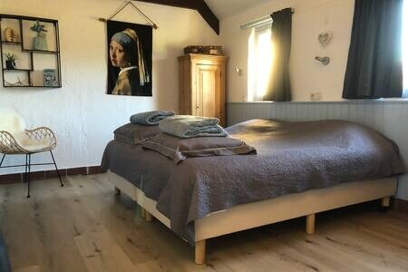 This picturesque, complete and carefully renovated old bakehouse (from around 1850) is a 15-minute walk from Heerder beach, with its own entrance and private terrace. The B&B is open from May 2019. The grounds are surrounded by meadows with cows and horses that guard the tranquility of this special place. Directly in front of the house is a beautiful little stream with a bridge which gives the whole a fairy-tale image.