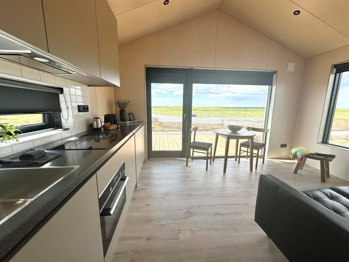 Charming tiny house in a peaceful, secluded location between Hella and Hvolsvöllur, just 8 min from highway No. 1. Perfect for relaxing and unwinding. The large panoramic front window lets you enjoy nature right from the bed: stunning sunrises, Northern Lights and views of the river, mountains and volcano Hekla. The house has a modern and well-equipped kitchen and a comfortable bathroom. !!Starting mid-June, a brand-new Jacuzzi with massage function and lighting will offer even more comfort!!