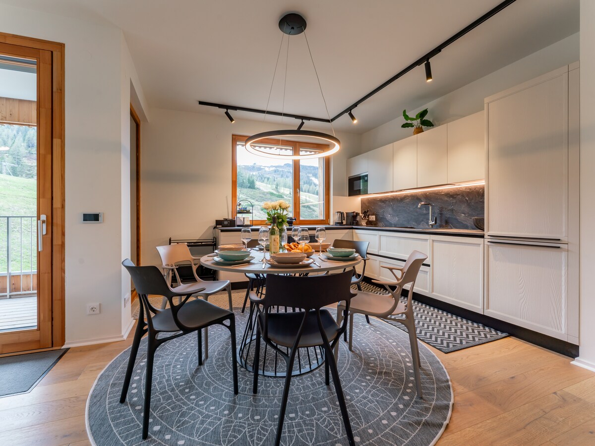 This charming family apartment on two levels combines comfort with lovely details. The centrepiece for younger guests is the HEIDIZIMMER directly under the roof, which can be reached via a space-saving staircase. The bright kitchen-diner is perfect for shared meals and relaxing moments. From the enchanting roof terrace, your gaze wanders over rolling pastures, Austria's southernmost glacier and the Lesachtal mountains – a peaceful retreat surrounded by clear air and tranquil nature.