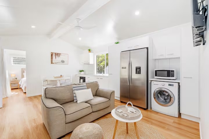 Welcome to our lovely, fully self-contained studio apartment — your own tropical sanctuary. Fresh and clean, the studio has everything you need for a comfortable and relaxing stay. The studio is located in the backyard of our home, converted to host guests. You’ll enjoy a private entrance and your own peaceful space, separate from the main house. Step outside to a tranquil deck, perfect for enjoying a cuppa or an evening glass of wine. 🚭 Please note: This is a non-smoking property.